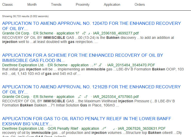 So he did a KiP search in AppIntel for bakken immiscible gas injection. He found over 10,000 hits. He ordered three applications that looked the most promising. And he received them on-demand into his email inbox through AppIntel.